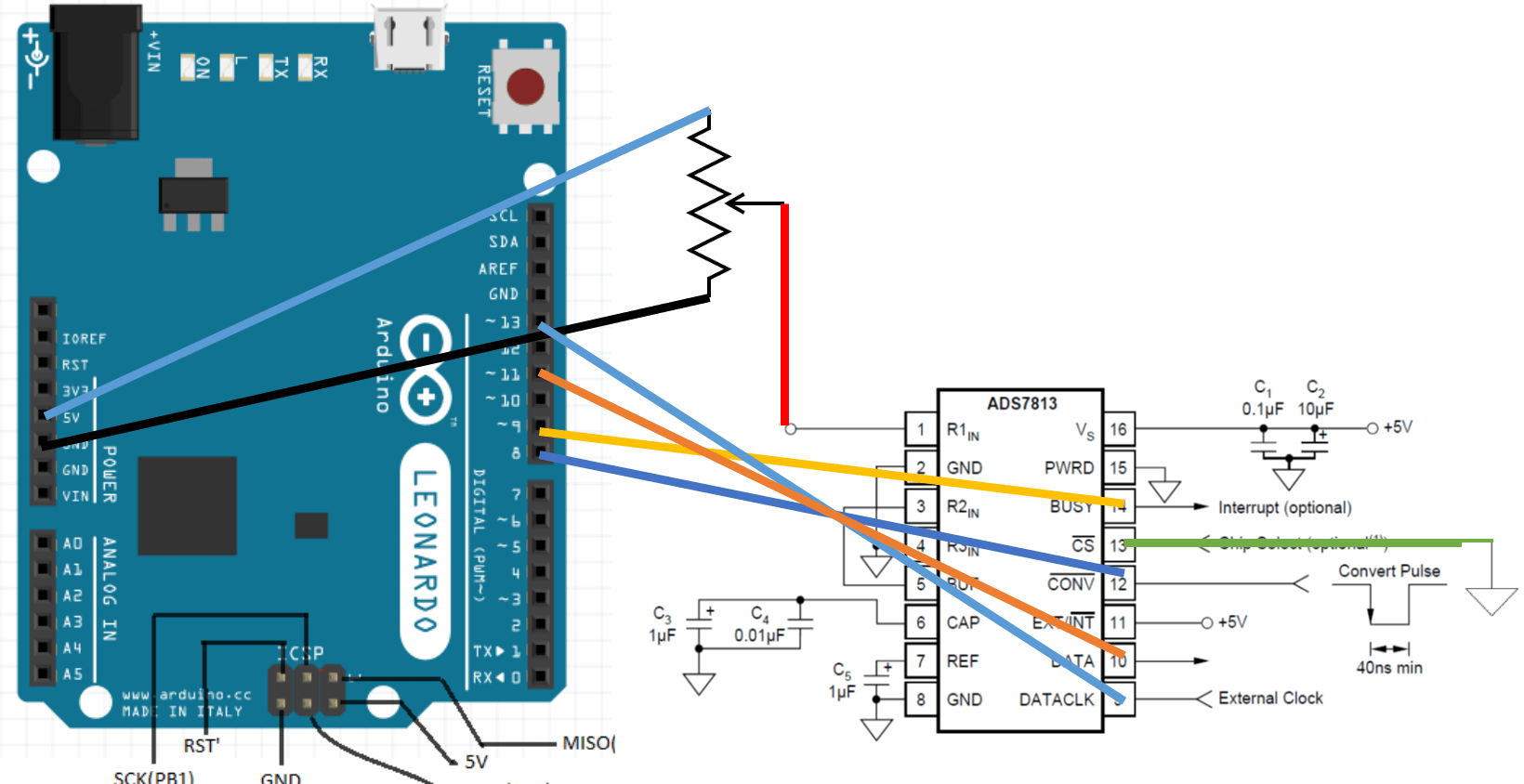 This is the electric connection diagram that I used for my setup. I have used ADS7813 but all configurations are same with ADS7812. Just only difference is that the resolution of ADS7812 is 12bit .